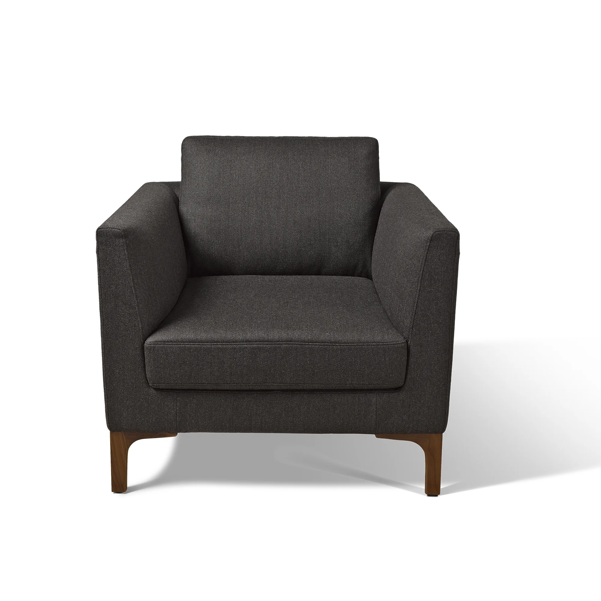 Simplicity at its finest. The uncompromising nature of the unfussy lines combined with fine detail create personality and intimacy. The small loose fabric cushions create a stark contrast to the leather-clad back cushioning. The components – sofa, armchair, stool, daybed – can be combined individually and provide maximum design flexibility. An invitation to feel good!